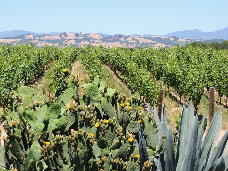 Dann ging’s nun wirklich los, wir verließen also die Pazifikküste und fuhren im Tal des Russian River in Richtung Guerneville. Immer wieder gab es schöne Ausblicke auf den Fluss. Es gab am Ufer sogar Strände, wo die Leute badeten oder sich sonnten. Die Straße war zwar gut befahren, aber zum Glück ziemlich eben. So kamen wir schnell voran und erreichten gegen Mittag Guerneville, eine kleine Stadt mit historischen Gebäuden und einem netten Café, wo wir uns erstmal stärkten. Wir fuhren weiter am Fluss entlang, doch dann bog die Straße ab und uns blieben ein paar Anstiege nicht erspart, allerdings im Vergleich zu den letzten Tagen waren sie kaum erwähnenswert. Schon bald erblickten wir die ersten Weingüter. Die Sektkellerei Korbel bot Touren, Verkostung und allerlei Delikatessen an. In Anbetracht der Hitze war eine Verkostung nicht unbedingt sinnvoll, denn schließlich wollten wir Healdsburg erreichen und bis dorthin mussten wir noch über 20 km zurücklegen. Zur geführten Tour kamen wir leider ein paar Minuten zu spät. Da die nächste erst eine Stunde später beginnen sollte, entschlossen wir uns weiter zu fahren. Schließlich lagen noch zahlreiche Weingüter am Weg.