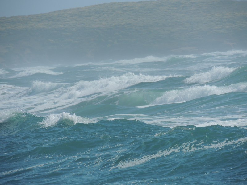Richtung Bodega Bay hatten wir uns erst den Zeltplatz Doran Beach ausgeguckt, da dort ein eigener Sandstrand sein sollte. Aber der Radler in Bodega hatte uns schon gewarnt, dass dort kaum etwas Schutz vor dem heftigen Küstenwind bot. Und wirklich: kurz vor dem Zeltplatz blies uns der Wind so kräftig ins Gesicht, dass wir uns doch lieber für den State Park “in den Dünen” entschieden. Hier schlugen wir auf einer Lichtung zwischen großen Eukalyptus- und Nadelbäumen unser Zelt auf. Nachdem unser temporärer Wohnsitz eingerichtet war, schwangen wir uns noch einmal auf die Räder und radelten die kleine Zufahrtsstraße zum Strand. Noch ein kurzer Fußweg über die Dünen und da war er: der Pazifik – und zwar gar nicht so friedlich, trotz Sonnenschein. Wir suchten uns ein windgeschütztes Plätzchen und nahmen sogar ein kleines Sonnenbad-Nickerchen.